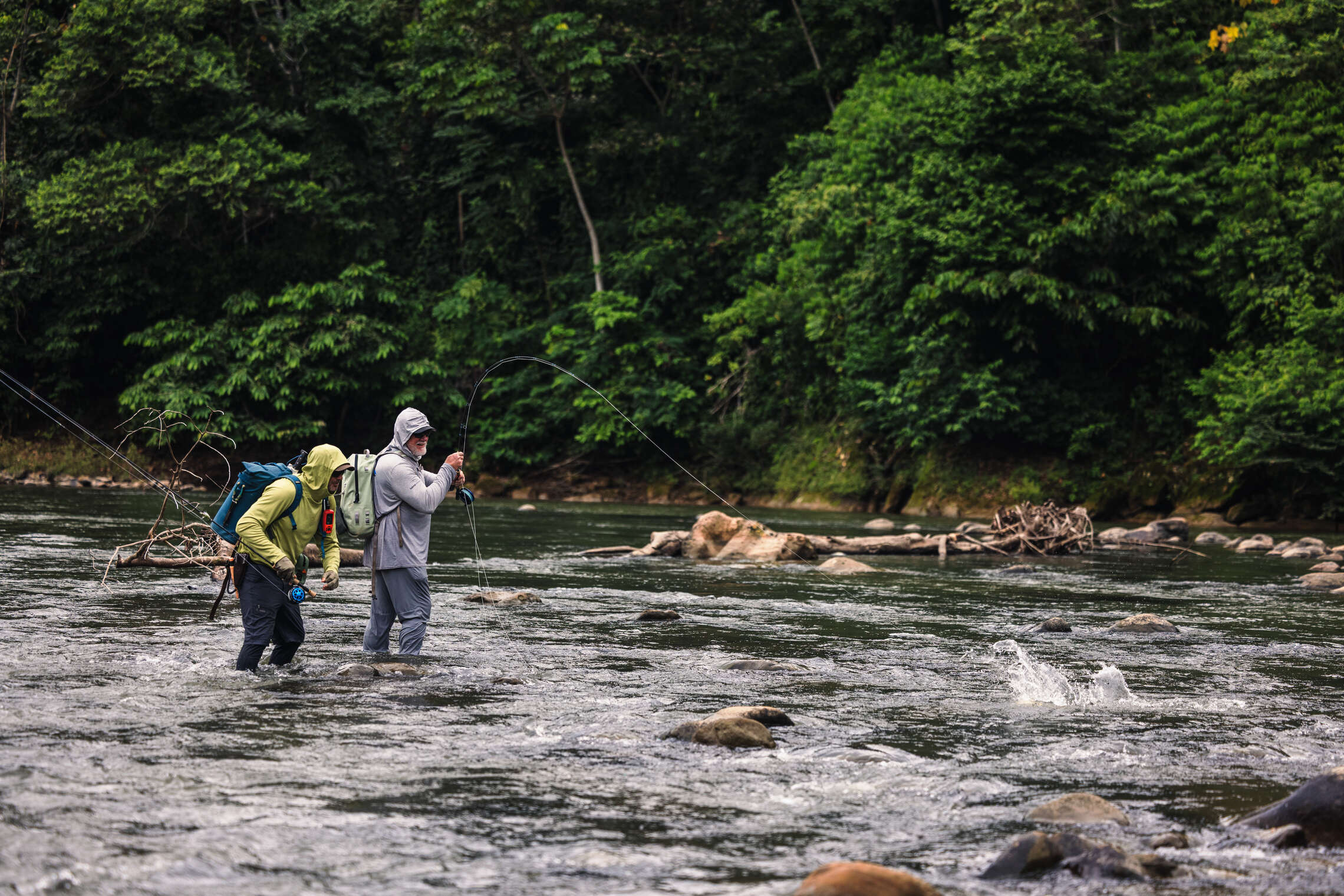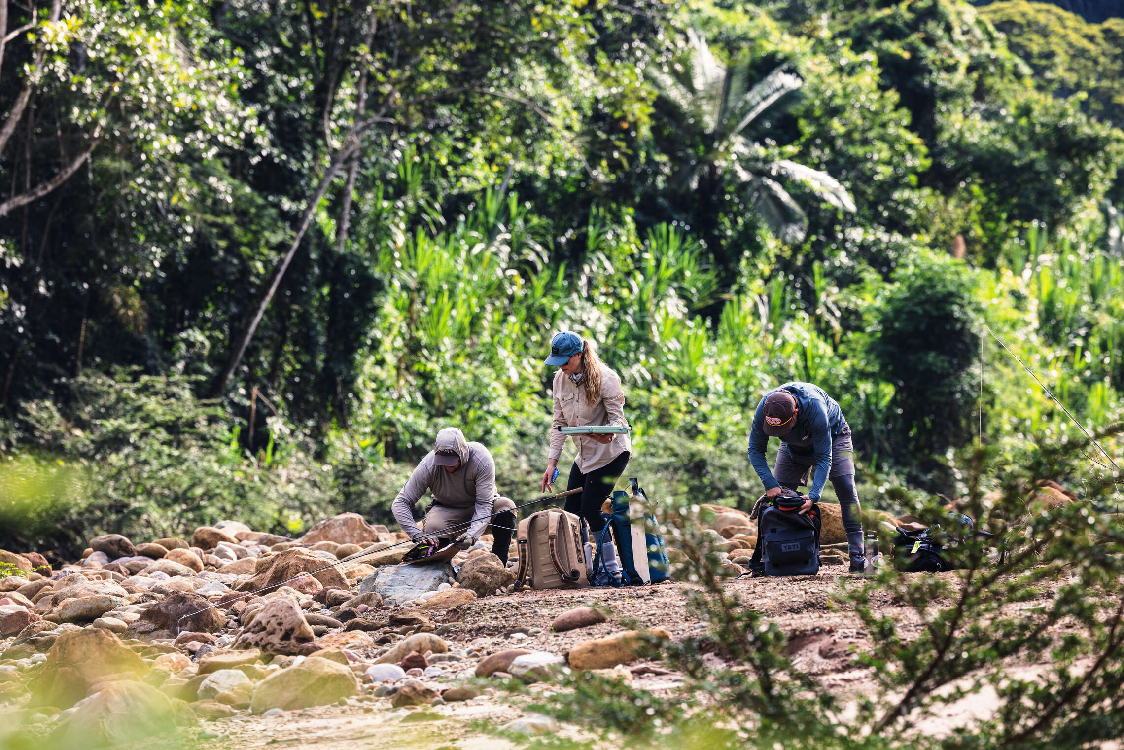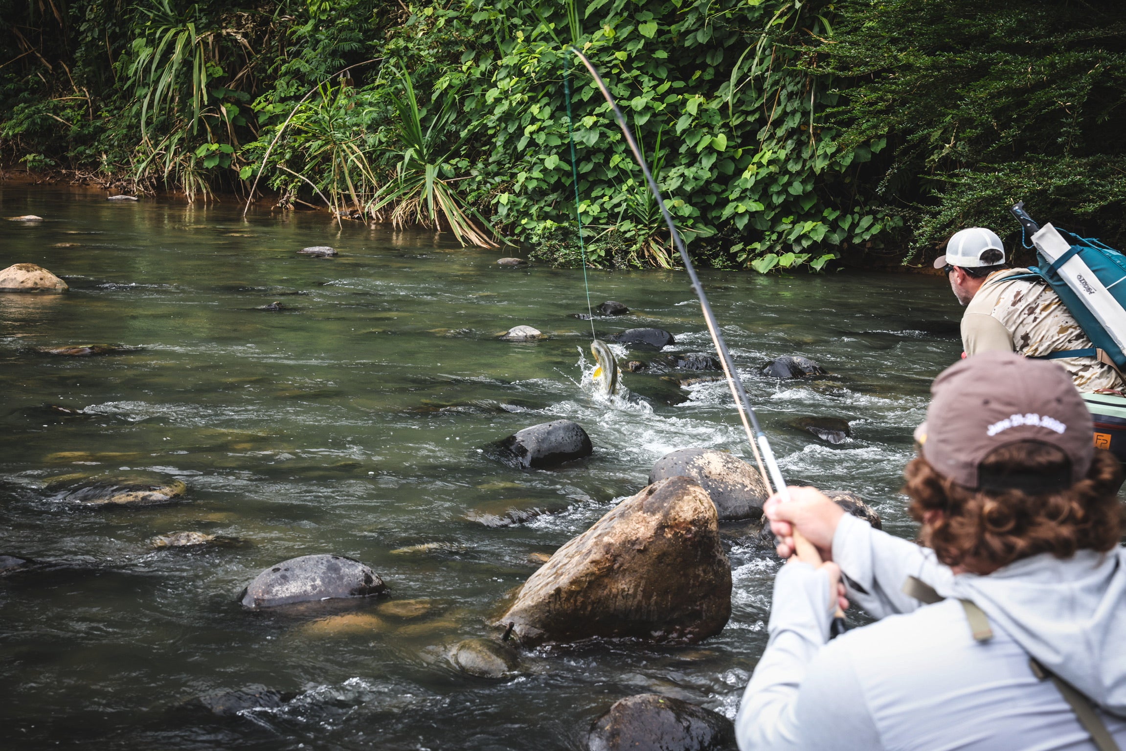 While you definitely want to have exactly the right gear, clothing and tackle—it is actually a fairly simple packing list. The primary consideration when gearing up is to ensure comfort and protection from the elements here. You want to cover every bit of skin possible to protect from sand flies (hoodies, tights, long pants, gloves), and excellent footwear (felt soles) along with associated guard socks and/or gravel guards are mandatory. A fully submersible backpack or hip pack is also a must (you will do some swimming), and reapplying bug juice is critical. Just ask Jason Petty! Bring whatever meds you need for sore muscles and achy joints as well. The lodge(s) do have daily laundry service — which will allow guests to stay underneath the strict 45-pound baggage weight limit. While there are many additional nuances to packing and gearing up for any Bolivian jungle fly fishing trip, the following short checklist is helpful: