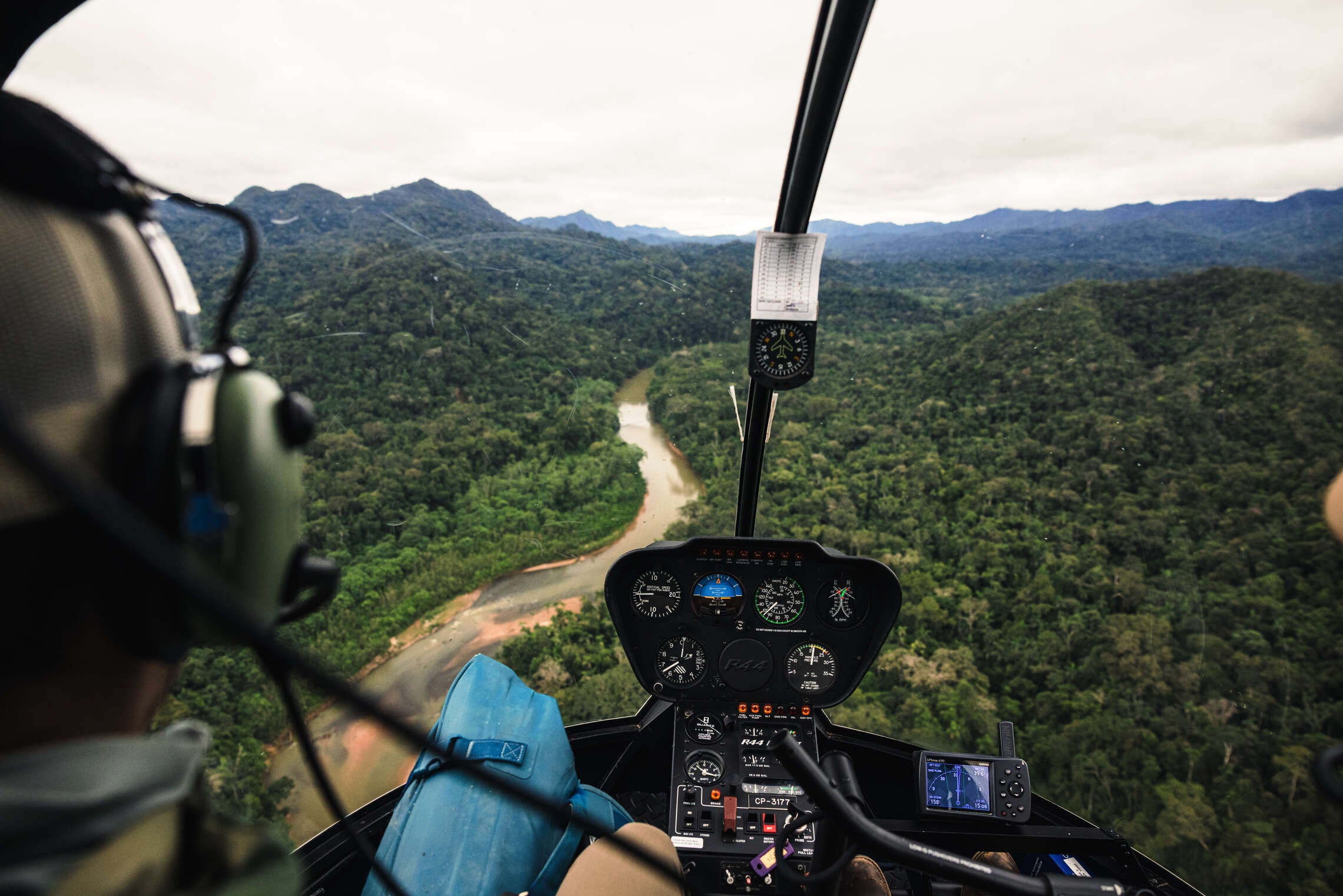 Home → Miami → Santa Cruz → Overnight Los Tajibos → 50-minute charter to the Oromomo Village → Heli flight to lodge.