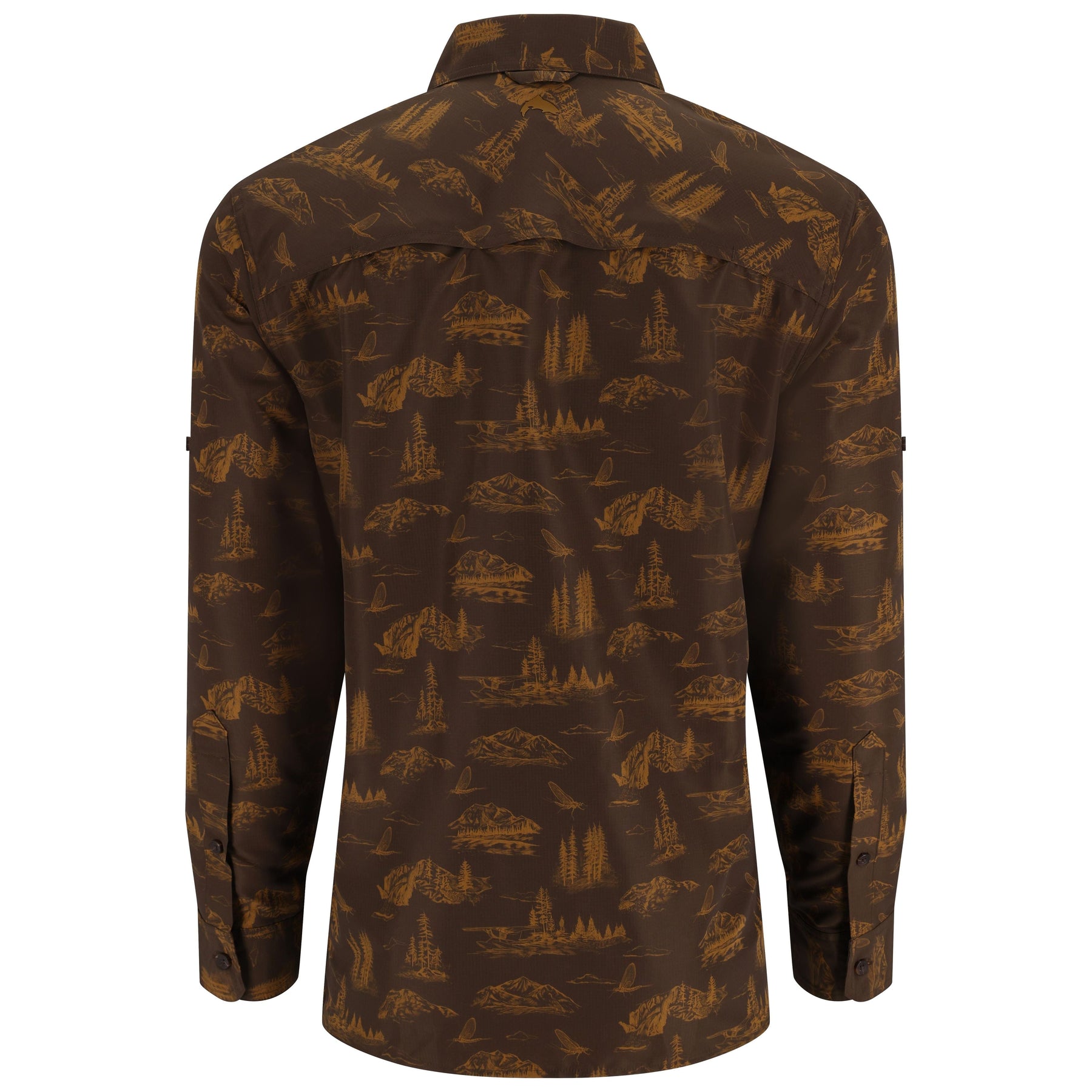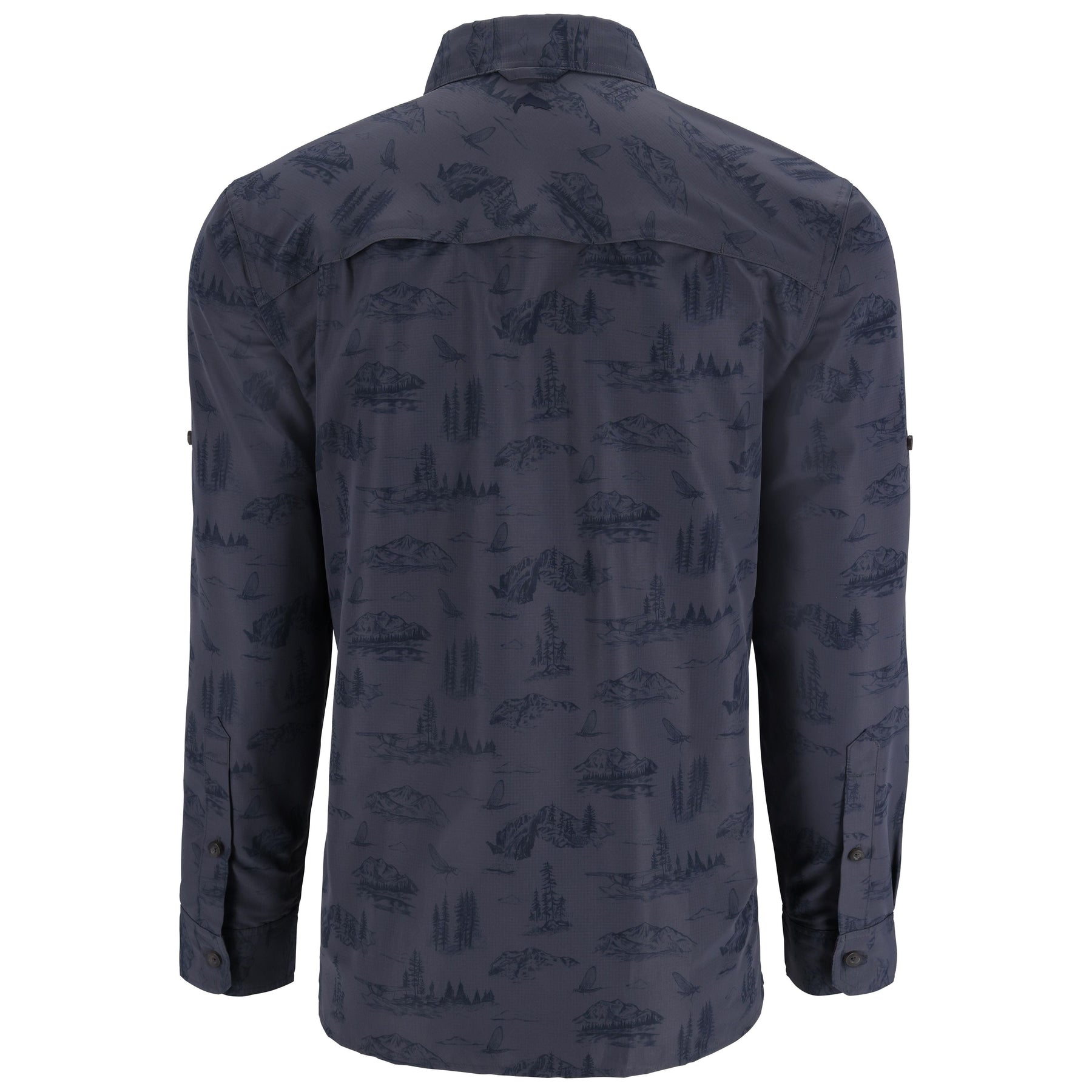 - Classic point collar for a crisp look and casual feel, center back locker loop and button-front closure. Finished with shirttail hem, self-fabric side seam gusset and convenient sunglasses chamois