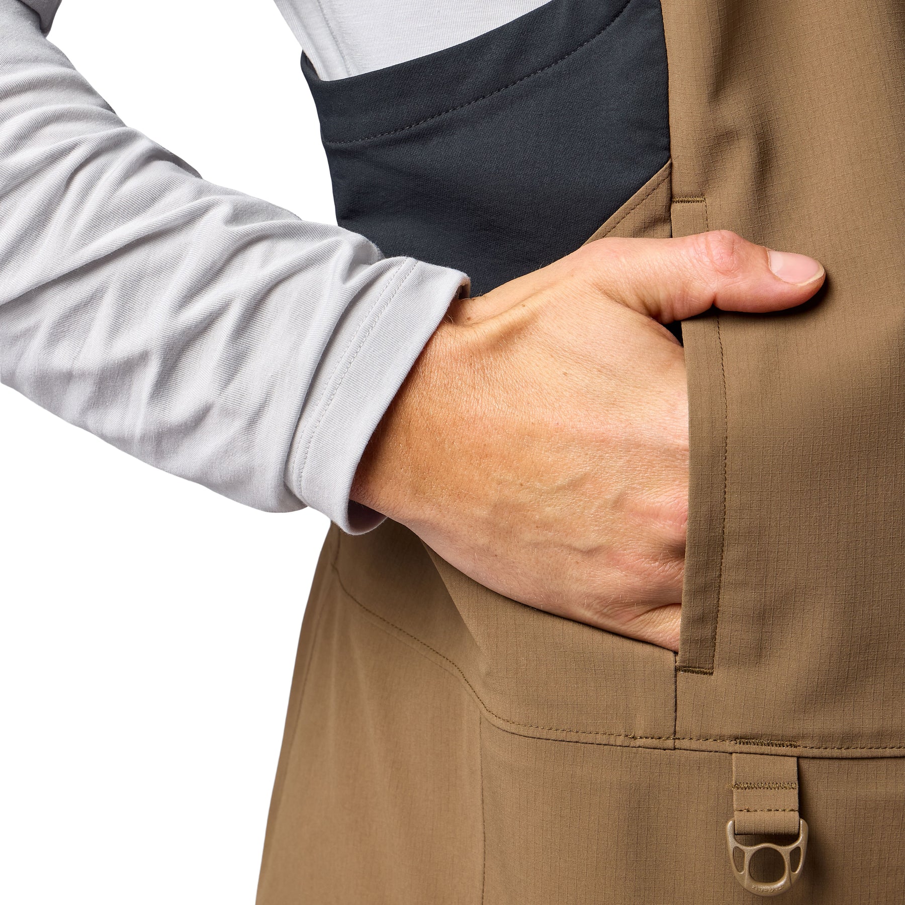 - Mapped high-stretch side and back panels for freedom of movement and layering under bib